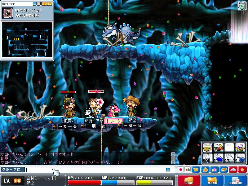 こないだ久しぶりに紙集めしました。うーん、鍵の場所変わってましたね。めっちゃ、(;´-`).。oO(ぇ・・・・)情報不足で申し訳なかったです。3人やったけど29分でギリギリでしたわ。画像があればいいにゃけどノートPCのSSってどこなんやろ。まあいいとしてやね。実は閉鉱専門のギルドなんかつくってみよかなぁーなんて思ってます。HPのほうも最近更新してないんでネタつくりちゅうかデータ作成してるんでそのうち更新されることでしょう。そのうち、、、、、